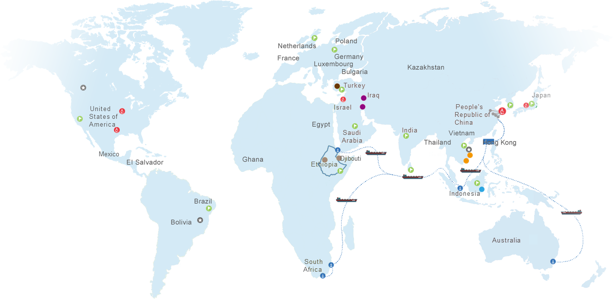 Ethiopia, United States, Japan, Vietnam, Indonesia, Sri Lanka, Turkey, etc.